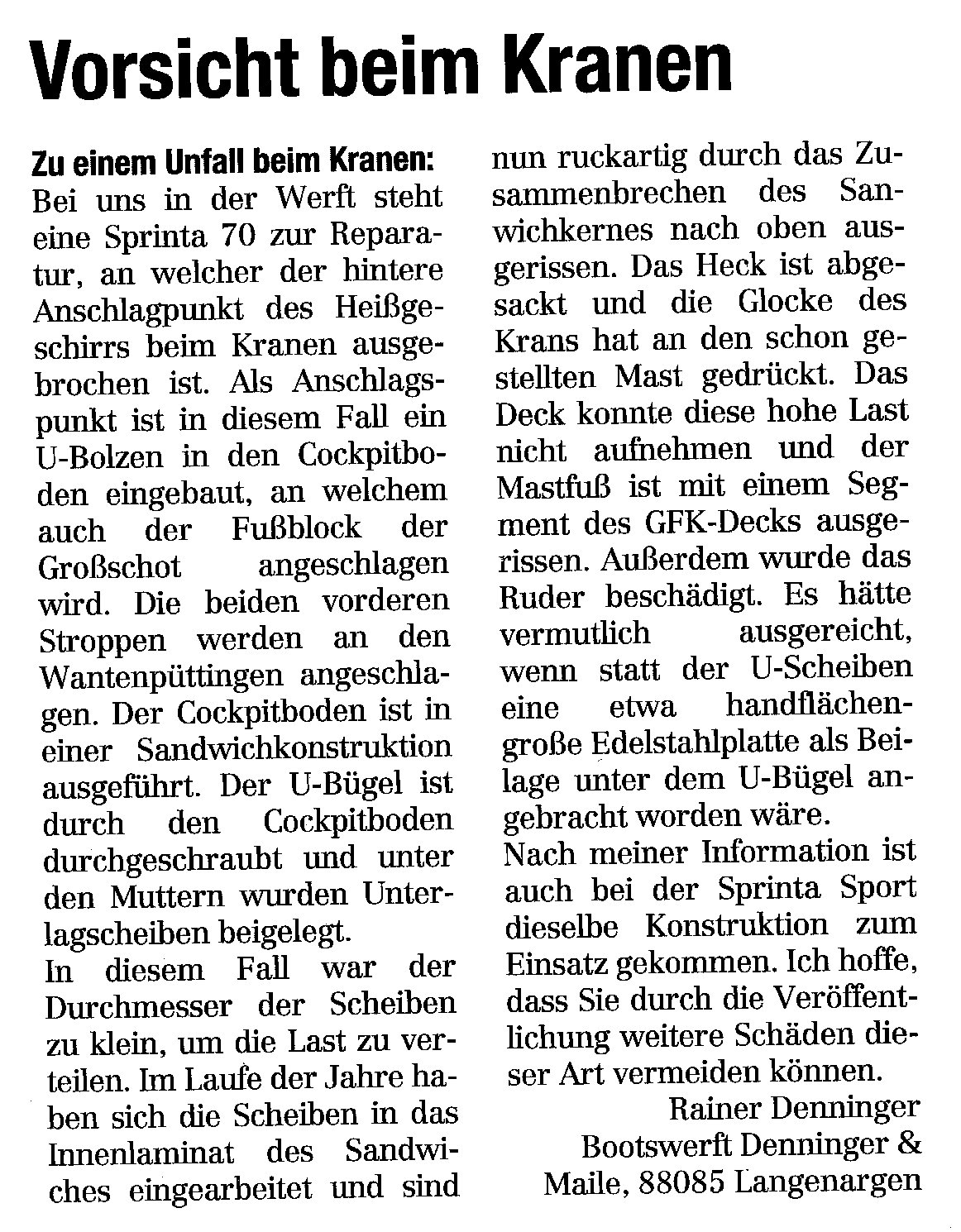 P.S: Bitte alle SPRINTA-Segler auf diese Seite aufmerksam machen! Präsenz hat noch nie geschadet - sie macht Boote interessanter und trägt wesentlich dazu bei, die Verkaufspreise zu stabilisieren!