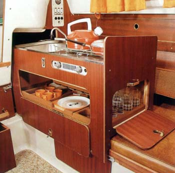 Backbord-Sitzducht hervorgezogen wird, hat einen 2-flammigen Spirituskocher