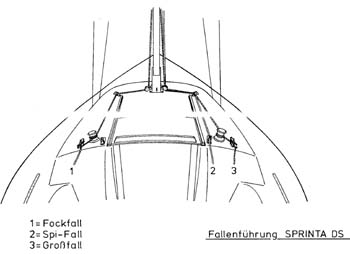 Bei der DS sind alle Fallen über Umlenkblöcke ins Cockpit geführt. So ist die Bedienung aus sicherer Position möglich. Sicheres Bewegen auf dem Deck wird durch Teakhandläufe und durch ein rutschfestes Decksprofil erreicht.