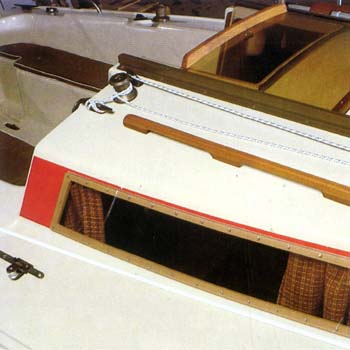 Bei einer Cockpitlänge von 1,95 m hat die Crew reichlich Platz. Das Cockpit ist selbstlenzend. Für die Pinne des Balance-Ruders wurde Edelholz verwendet. Am Spiegel ist die Halterung für den Außenborder angebracht. Beim Segeln wird der Motor mit einer Talje aufgeholt. Schaft und Propeller schleifen so nicht durchs Wasser.