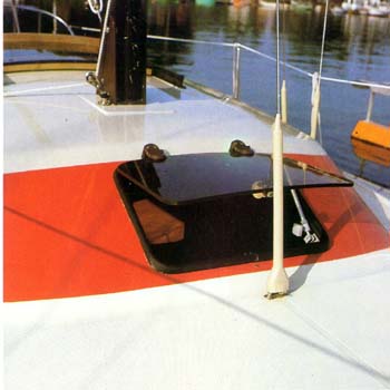 Das Vorluk der geräumigen Kajüte sorgt für zufriedenstellende Belüftung. Durch seine Anordnung kann es auch bei Regen geöffnet bleiben und in jeder Höhe beliebig arretiert werden.